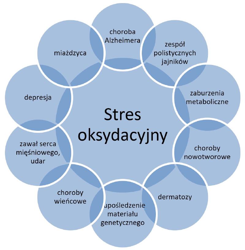 Jest stanem, kiedy w organizmie człowieka dochodzi do zaburzenia homeostazy pomiędzy ilością wolnych rodników (oksydantów) a przeciwutleniaczami (antyoksydantów). W praktyce oznacza to, że organizm nie produkuje wystarczające ilości antyoksydantów wymaganej do walki ze szkodliwymi wolnymi rodnikami. Powoduje to silne jego osłabienie, zaburza prawidłowe funkcjonowanie, jest podatny bardziej na choroby. Stres oksydacyjny należy do grupy czynników uczestniczących w patogenezie zmian neurodegeneracyjnych, a wśród nich wyróżniamy takie jednostki chorobowe jak Parkison, Alzheimer, stwardnienie rozsiane. Cały proces zachodzi również w skórze, zaburza jej mechanizmy ochronne, tym samym przyspieszając procesy starzenia się.